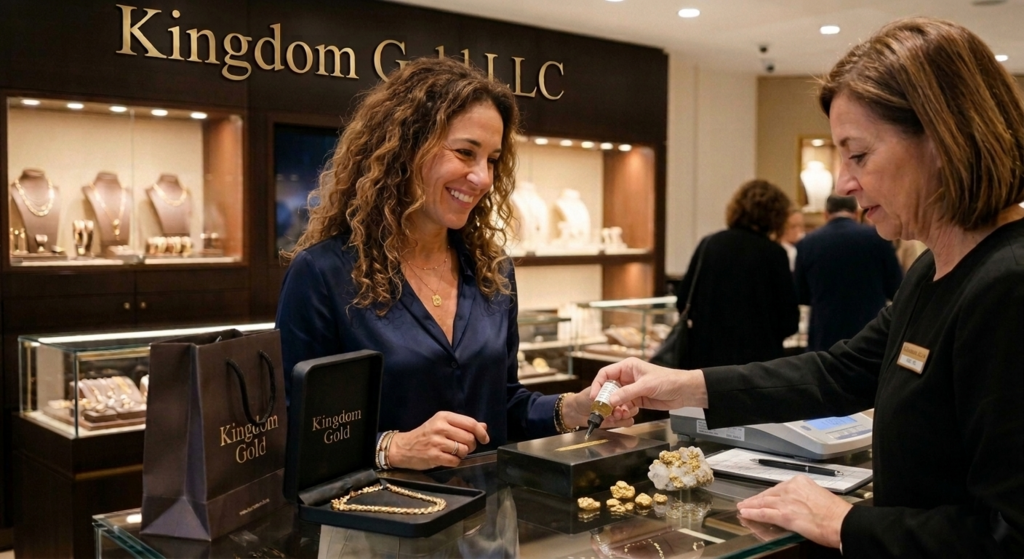 En Kingdom Gold LLC, nuestra dedicación es ofrecerte una atención excepcional, valoraciones transparentes y una experiencia de total confianza para la venta de tus metales preciosos, joyas y otros artículos de valor. Nos especializamos en oro, plata y piezas valiosas, asegurándote un proceso justo y claro.